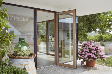 Beruf und Privatleben in einem topmodernen Gebäude unter einen Hut gebracht - das macht es für die Bauherren und zugleich Winzer möglich, ihre offene und gastfreundliche Arbeitsphilosophie im stilvollen Rahmen auszuleben.