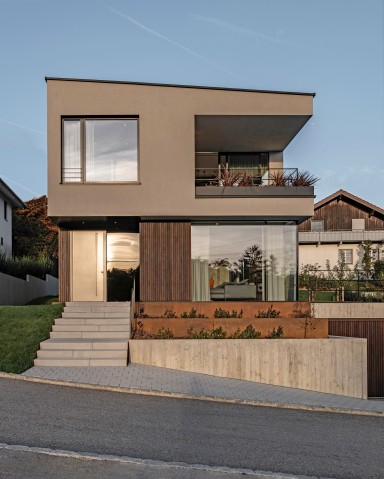 Der Wunschzettel der Bauherrin und ihrer Familie war vielfältig und anspruchsvoll. Hell, warm, behaglich, offen, modern und mit Ausblick ins Grüne – so sollte das neue Zuhause sein. Aus dieser Beschreibung entstand ein lichtdurchfluteter Rückzugsort auf dem 620 m² großen Grundstück am Stadtrand. Weiße Wände sucht man hier vergeblich.