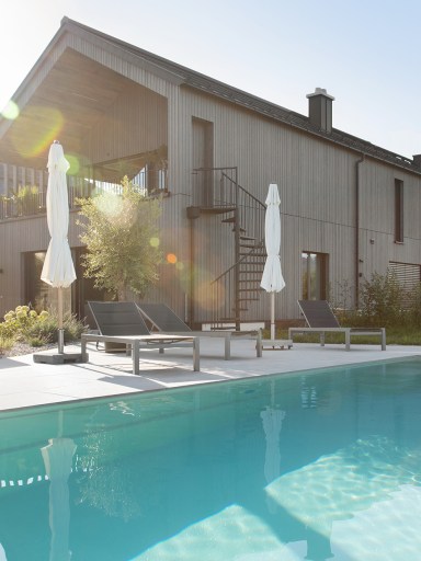 Der Neubau entstand an der Stelle eines 450 Jahre alten Bauernhauses, das zuvor abgerissen wurde. Der Wunsch der Bauherren war es, den ursprünglichen Charakter des Ortes aufzugreifen und in die neue Architektur zu übersetzen. So entstand ein langgestrecktes Gebäude mit den Maßen 18 x 9 Metern, das den typischen Scheunen-Charakter bewahrt, gleichzeitig aber in seiner klaren Formensprache und mit modernen Elementen überzeugt.