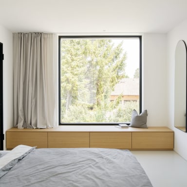 Der Wunsch, der Hektik der Großstadt zu entfliehen und die Ruhe im Grünen zu genießen, führte das junge Paar aus Wien aufs Land. Hier, umgeben von Natur, konnten sie ihr Traumhaus verwirklichen – ein Ort, der ihre Leidenschaft für Design und Ästhetik widerspiegelt. Minimalismus und klare Linien standen bei der Planung im Vordergrund. Große Glasfronten und schlanke Rahmen waren besonders wichtig um viel Tageslicht in die Räume zu holen und das Innere hell und freundlich zu gestalten.