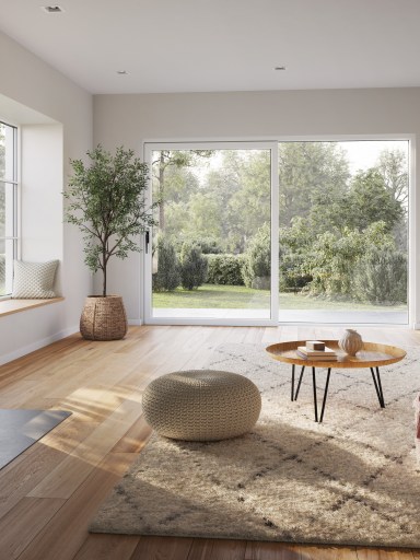 Zirkon lässt sich vielfältig gestalten: auch als Fixteil, Terrassentür oder Hebeschiebetür.
