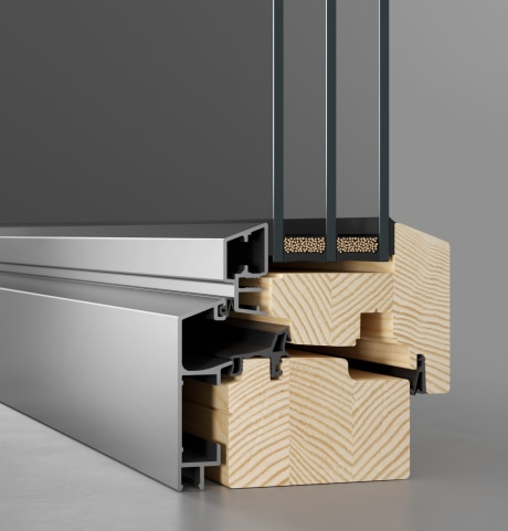 Amber zeichnet sich durch seine besonders schlanken Rahmen aus und schafft dadurch um bis zu 17 % mehr Glasfläche* als ein herkömmliches, versetztes Holz/Alu-Fenster.