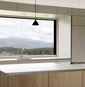 Fixverglasungen von Josko können in beeindruckenden Dimensionen bis zu 4,5 Metern Höhe und nahezu unendlich nebeneinander kombiniert werden. So entstehen riesige Glasflächen, die einen offenen, lichtdurchfluteten Raum schaffen. Auch Glasecken sind möglich, wodurch die Teilung der Fenster auf ein Minimum reduziert wird.